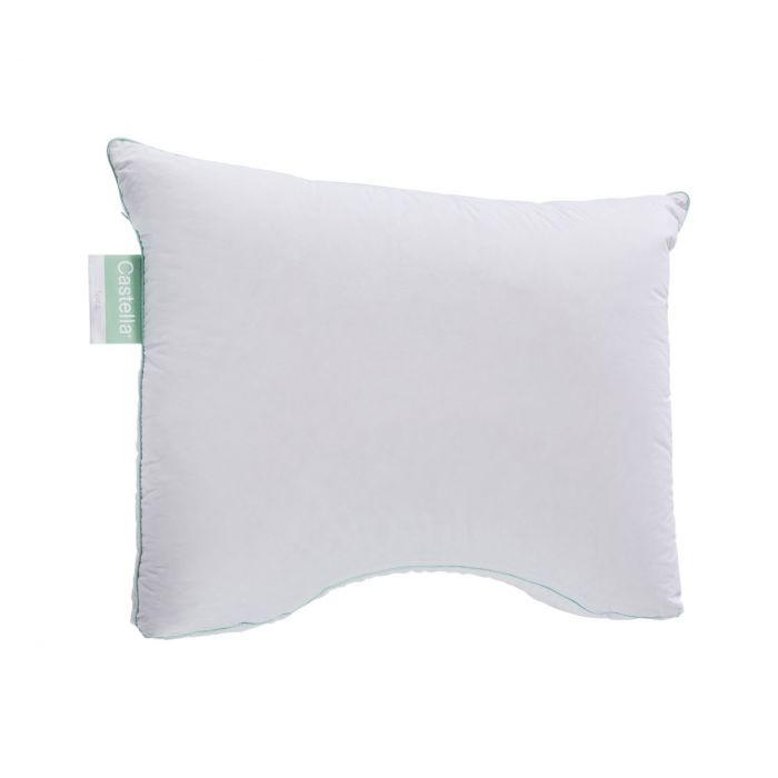 Het unieke aan de Castella Spica is de verdeling van het kussen in drie vakken: het middelste vak is voorzien van een Vita Talalay® latex kern, dat door de ronde, open celstructuur de beste ondersteuning geeft aan hoofd en nek. De twee buitenvakken van de Castella Spica zijn gevuld met 90% hoogwaardige Europese eendendons en zorgen ervoor dat je zacht en comfortabel ligt. Dit alles maakt de Castella Spica dan ook zeer geschikt voor mensen met schouder- en/of nekklachten die niet willen inleveren op het comfort van een donskussen.